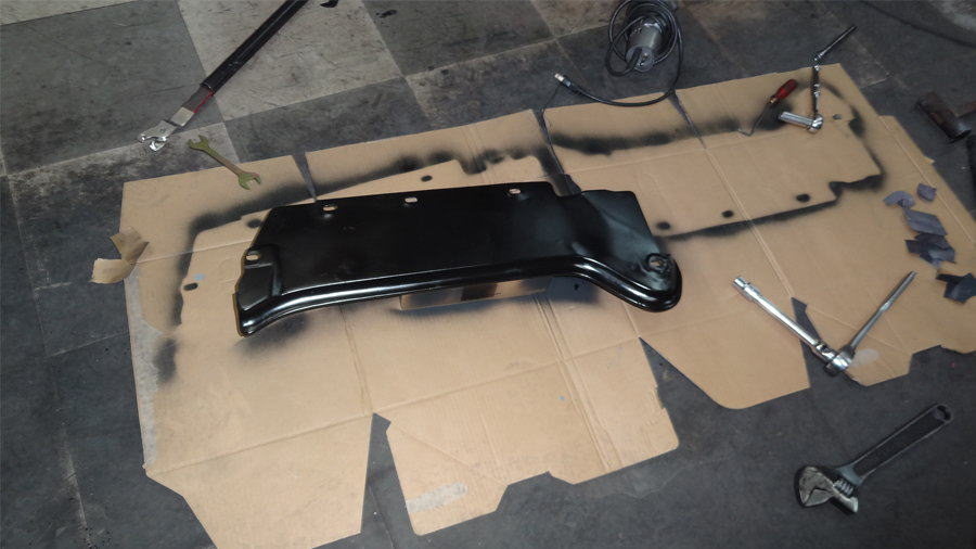 ヘッドライト下のプレートも耐熱ブラック塗料で塗りました。