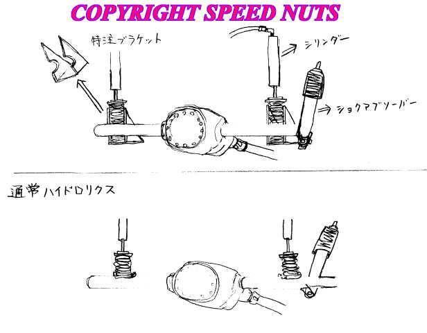 超乗り心地仕様の仕組みは上記の図の様にリアショックアブソーバーの位置をリローケートし